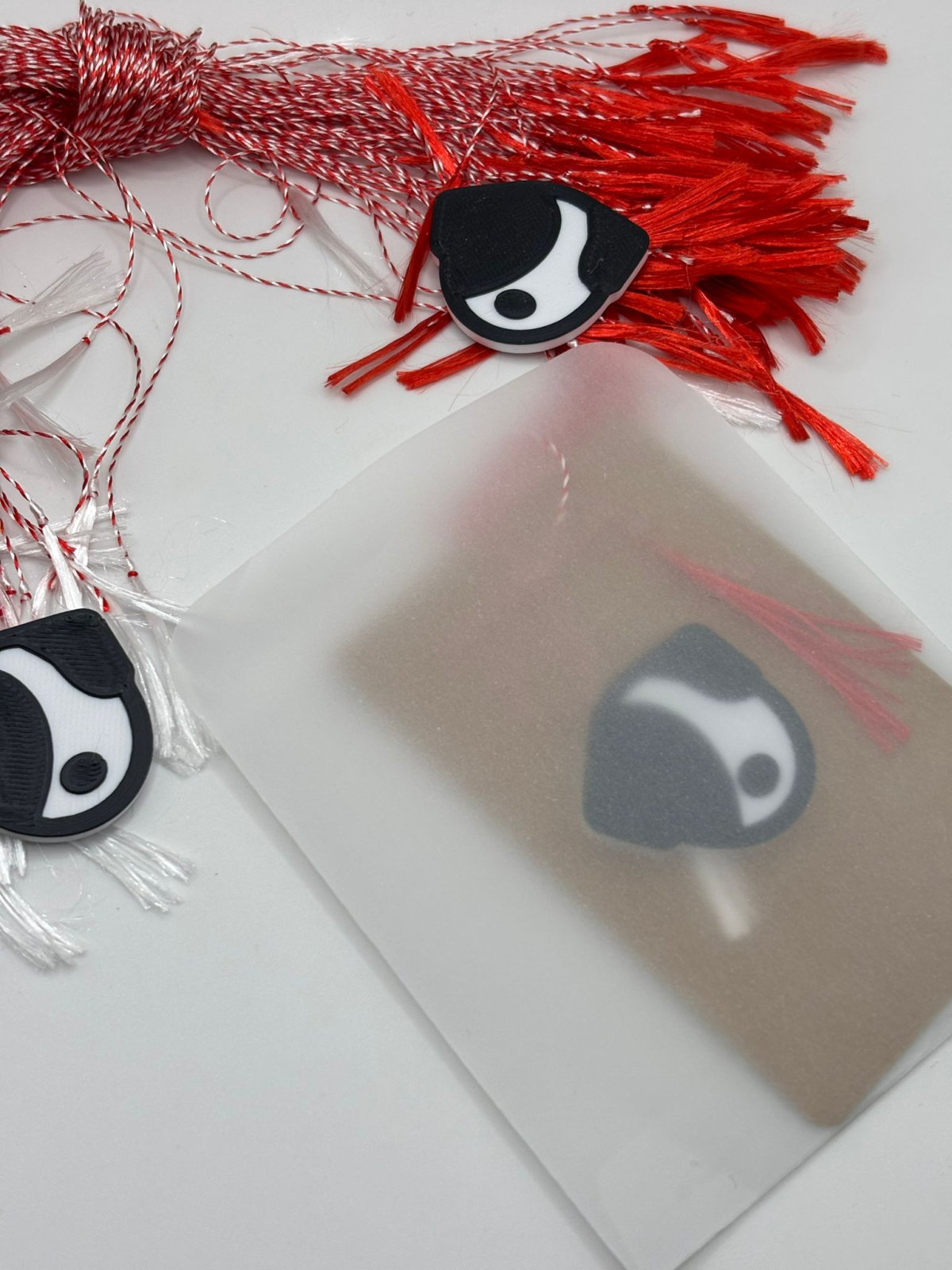 Acest mărțișor sub formă de cap de cățel este realizat prin printare 3D, aducând un strop de veselie și căldură în tradiția de 1 Martie. Este prevăzut cu sistem de prindere tip broșă, ușor de purtat pe haine, genți sau ghiozdane.